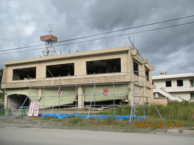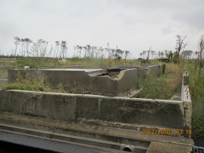 【写真3】海岸線の旧市街地集落の住宅は跡形もなく、ドコモかしこもコンクリートの土台だけが、ムキ出して残っていた。元の住宅に復活させるには、大変な努力が必要と思うと、胸が締め付けられる。