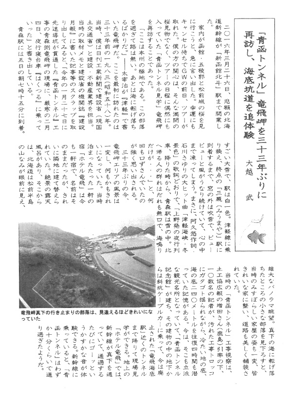 「ここは本州の極地である。この部落を過ぎて路は無い。あとは海に転げ落ちるばかりだ。」――太宰治が『津軽』で書いた竜飛岬だ。ここを最初に訪れたのは33年前の1983(昭和58)年。当時、僕は日刊工業新聞で建設省(現国土交通省)と建設・不動産業界を担当。当時の取材メモと建設省の機関誌『建設月報』に書いた記事等のスクラップを取り出してみると、「今年の1月27日に先進導坑が貫通した『青函トンネル』工事の青森側竜飛岬の現場に、厳寒の2月4日、夜行寝台車「はくつる」に乗っていった」と書き出している。