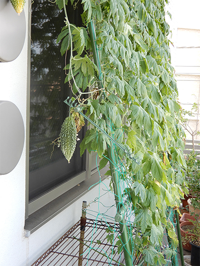 筆者が毎年丹精込めてベランダにつくる「緑のカーテン・ゴーヤ」