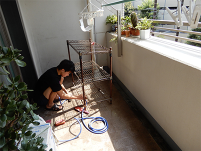 大規模修繕工事の着工直前に、ベランダのあと片付け