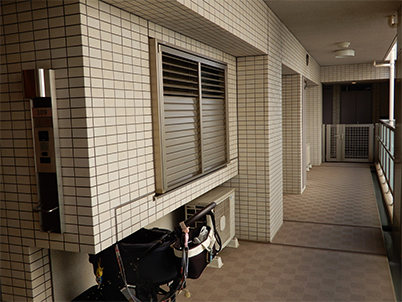 そして9月、着工間近の最終「居住者説明会」で、施工業者と居住者との間で厄介な悩ましい問題が起きた。それは廊下側にあるブラインド付きの面格子の取り外し・再取り付け問題。面格子周辺のシーリング打ち替え作業をする際には、その面格子を取り外さなければならない。それには作業員が、専有部の各部屋に入らなければならない構造となっていて、それも取り外し時と、工事が終わっての再取り付け時の2回にわたって、それぞれ小1時間ほど立ち入りする。コロナが収束していない現況では、作業員が部屋に入られること自体、居住者から不安視され、立ち入り拒否反応の要求が出された。とにかく、専有部の部屋に入る工事だけは避けてほしいという居住者の強い要望なのである。(幸いベランダの修繕は、玄関から入らずに、外側の足場から入るので、問題はない。)
